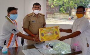 श्रीकृष्ण जन्माष्टमी उत्सव समिति नयागंज रुदौली द्वारा कोविड-19 कोरोना योद्धा के निमित सराहनीय कार्य के लिए कोतवाली प्रभारी निरीक्षक रुदौली विश्वनाथ यादव जी का समिति के कार्यकर्ता हिमाशु कौशल व नयागऺज वार्ड सभासद उमाशऺकर कसौधन ने कोतवाली परिसर मे स्मृति चिन्ह भेंट कर सम्मानित किया।श्री कृष्ण जन्माष्टमी छट उत्सव समिति नयागंज रुदौली द्वारा कोविड-19 मे उत्कृष्ट कार्यों के लिए पुलिस चौकी प्रभारी वीरेन्द्र कुमार पाल,वार्ड सभासद उमाशऺकर कसौधन,डाक्टर डाली जी,पत्रकार रविकुमार वैश्य,रविप्रकाश गुप्ता,रवीशकुमार सफाई नायक,नगर पालिका परिषद रुदौली को छठ उत्सव कार्यक्रम में सम्मानित किया।