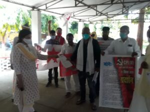 गोंडा :आज दिनांक 21-9-2020को सरकार की मजदूर,किसान,छात्र,नौजवान विरोधी नीतियों के खिलाफ भारत कीकमुनिस्ट पार्टी मार्क्सवादी ने जिला मुख्यालय पर एक दिवसीय धरना प्रदर्शन कर सिटी मजिस्ट्रेट गोंडा को माँग पत्र सौपा जिसमें किसान विरोधी विधेयक वापस लिया जाए,कोरोना महामारी के दौरान गृहकर,पानी के बकाये को माफ किया जाए,गरीबों को निशुल्क बिजली दिया जाए,कोरोना महामारी अवधि की समस्त छात्रों की फीस माफ किया जाए,शहरी मजदूरों को मनरेगा योजना से जोडा जाए आदि इस मौके पर जिला सचिव राजीव ,राम बहोर विश्वकर्मा,सीमा देवी,सदानंद गिरि अमित शुक्ला आदि तमाम लोग उपस्थित रहे ।