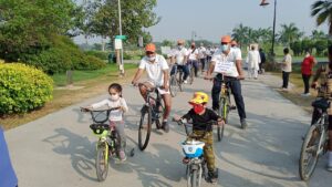 इसी कड़ी में श्री आलोक कुमार सिंह उप-महानिरीक्षक के दिशा-निर्देश पर 11वीं वाहिनी एन.डी.आर.एफ की एक पूर्ण टीम श्री नीरज कुमार–उप कमांडेंट के नेतृत्व में एन.डी.आर.एफ के क्षेत्रीय प्रतिक्रिया केन्द्र कैम्प कैलाशपुरी आलमबाग लखनऊ से साईकिल रैली का सुभारम्भ किया गया जोकि कैंट इलाका,मुख्यमंत्री आवास मार्ग व् 1090 चौराहा होते हुए जनेश्वर मिश्र पार्क,गोमती नगर,लखनऊ तक लगभग 29 किलोमीटर सफ़र का आयोजन किया गया I इसके बाद वहां पर उपस्थित लोगों को कोरोना वायरस से सावधानियां एवं बचाव के बारे में जागरूक किया गया और इस जागरूकता अभियान के दौरान प्रधान मंत्री श्री नरेन्द्र मोदी जी द्वारा दिए गए निर्देश दो गज की दूरी,मास्क है जरुरी व् सोसल डिस्टेंसिंग का विशेष ध्यान दिया गया, इस साईकिल रैली के दौरान एन.डी.आर.एफ एवं स्थानीय लोगों में उत्सुक्ता व् जागरूकता की भावना रही !