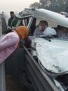 पटरंगा थाना क्षेत्र के अंतर्गत मिया का पुरवा चौराहे पर मंगलवार की सुबह करीब 6:20 पर ओवरब्रिज पर बोलेरो का टायर फटने के कारण बोलेरो वाहन अनियंत्रित होकर डिवाइडर से टकराई बोलेरो में सवार पांच लोग गंभीर रूप से घायलो को स्थानीय लोगो ने बोलेरो से बाहर निकाला सूचना पर पहुंची हाईवे पुलिस चौकी प्रभारी जितेंद्र यादव कांस्टेबल आकाश कुमार हरिकिशन ने सभी घायलों को अपनी गाड़ी से CHC मवई ले जाया गया जहां पर डॉक्टरों ने प्राथमिक उपचार के बाद एक व्यक्ति को लखनऊ रेफर कर दिया गया बाकी लोगों का इलाज मवई CHC में चल रहा है बताया जा रहा है कि बोलेरो सवार सभी लोग बिहार से लखनऊ की ओर जा रहे थे।