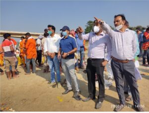 बहराइच- नानपारा तहसील अंतर्गत स्थित दुर्गा पूजा महोत्सव की प्रतिमा विसर्जन का सोमवार को किया गया शक्ति मां दुर्गा के विभिन्न गगनभेदी जयकारे के साथ-साथ सादगी पूर्ण श्रद्धालुओं का जत्था गया घाट के लिए रवाना हुआ सरकार द्वारा जारी गाइडलाइन के अनुरूप श्रद्धालुओं ने पिकअप पर प्रतिमा की मनमोहक झांकी सजाकर लोग विसर्जन स्थल गायघाट के लिए रवाना हुए इस दौरान सुरक्षा दृष्टिगत व्यापक पुलिस फोर्स मुस्तैद रही। बताया जा रहा है कि इस बार कोरोना संक्रमण के चलते तीज त्यौहारों को संपन्न कराने के लिए सरकार द्वारा जारी गाइडलाइन के अनुसार पूजा प्रतिष्ठान व प्रतिमा विसर्जन की अनुमति दी गई थी। सोमवार को दुर्गा पूजा के श्रद्धालुओं ने शांतिपूर्ण दुर्गा प्रतिमा का विसर्जन यात्रा निकाली जिसमें सीमित संख्या में कमेटी के कार्यकर्ता व श्रद्धालु शामिल होकर विसर्जन स्थल गायघाट के लिए रवाना हुये। जहाँ पर ज्वॉइंट मजिस्ट्रेट नानपारा सूरज पटेल आईं.ए.एस. के नेतृत्व में नायब तहसीलदार मिहींपुरवा शशांक व नायब तहसीलदार नानपारा मनीष कुमार वर्मा व पुलिस उपाधीक्षक नानपारा जंग बहादुर यादव स्थानीय राजस्व कर्मचारियों व पर्याप्त पुलिस बल के साथ गायघाट विसर्जन स्थल नदी को प्लास्टिक मुक्ति प्रतिमा विसर्जन कराये जाने हेतु मुस्तैद दिखे।