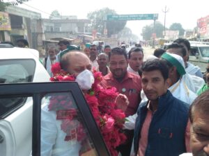 अयोध्या पंचायत में जाते समय भारतीय किसान यूनियन टिकैत के राष्ट्रीय उपाध्यक्ष राजेश सिंह चौहान का गुरुवार को असंद्रा बाजार में जोरदार ढंग से स्वागत किया गया।
