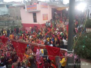 काली मंदिर परिसर में बने सरोवर पर भगवान सूर्य को अर्घ देने के लिए घाट पर सैकड़ों महिलाओं का आस्था का सैलाब उमड़ पड़ा विधि विधान से सूर्य देव को अर्घ देकर महिलाओं ने सुख समृद्धि की कामना की भगवान सूर्य देव से सदैव परिवार पर कृपा बनाए रखने का भी वरदान मांगा।