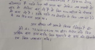 रिपोर्ट- अवनीश कुमार मिश्रा बस्ती जनपद के हरैया तहसील के अंतर्गत विद्युत उप केंद्र वीरपुर खारहरा के अंतर्गत ग्राम डूहवा मिश्रा में. विद्युत उपभोक्ता अवधेश कुमार मिश्रा के घरेलू विद्युत कनेक्शन नंबर 751608164548 पर मीटर रीडिंग से बहुत अधिक बिल बना रहे हैं जिसको लेकर उपभोक्ता ने अपने उपकेंद्र पर …
