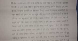 दिनांक -11-03-2023 दुर्गा प्रसाद तिवारी क्राइम रिपोर्टर गोंडा – मामला थाना कोतवाली देहात के अंतर्गत ग्राम चौरसिहा का है जहां के निवासी राम विनोद तिवारी ने पुलिस अधीक्षक को प्रार्थना पत्र देकर विपक्षियों पर प्राथमिकी दर्ज होने की उठाई मांग मामला होली के दिन का है शाम करीब 6:00 बजे …