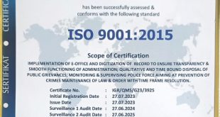 अवनीश कुमार मिश्रा सीएमडी न्यूज़ ब्यूरो चीफ बस्ती। अपर पुलिस महानिदेशक गोरखपुर जोन गोरखपुर अखिल कुमार द्वारा परिक्षेत्रीय कार्यालय का भ्रमण किया गया। अपर पुलिस महानिदेशक गोरखपुर जोन गोरखपुर अखिल कुमार द्वारा पुलिस महानिरीक्षक बस्ती परिक्षेत्र आर0के0भाऱद्वाज को आई0एस0ओ0 सर्टिफिकेट प्रदान किया गया। यह प्रमाण पत्र बड़ी बड़ी कारपोरेट कम्पनियों …